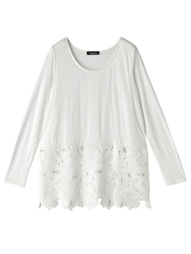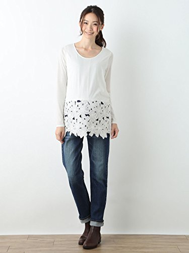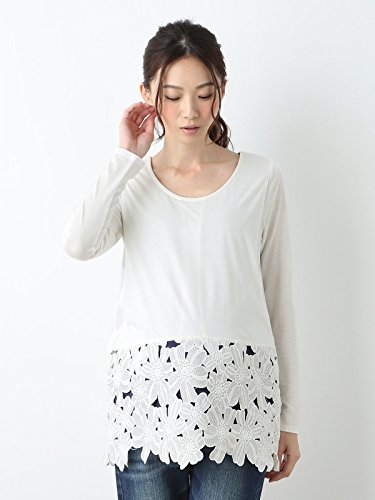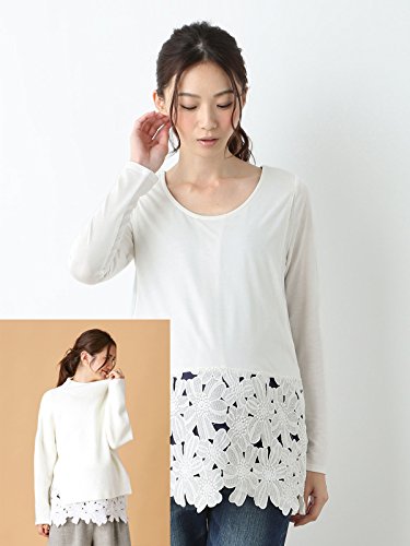 Angeliebe エンジェリーベ マタニティ 授乳口 付 裾 レース トップス 産前 産後 妊婦服 長袖 フリー ホワイト