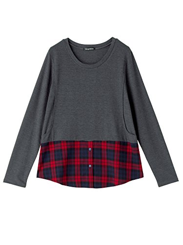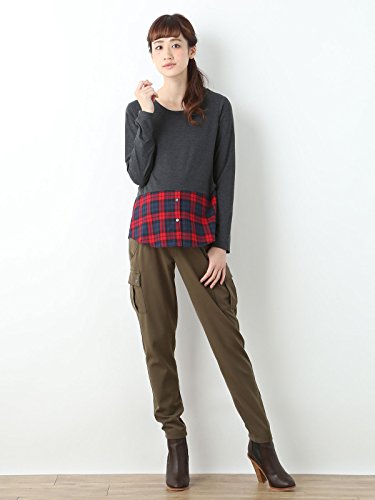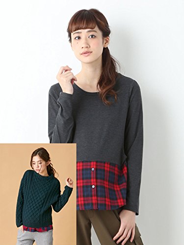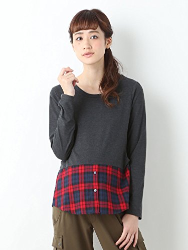 Angeliebe エンジェリーベ マタニティ トップス 授乳口付き 裾 チェック レイヤード カットソー 妊婦服 産前 産後 M ~ L 杢 チャコール × レッド チェック 21156 21156102