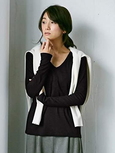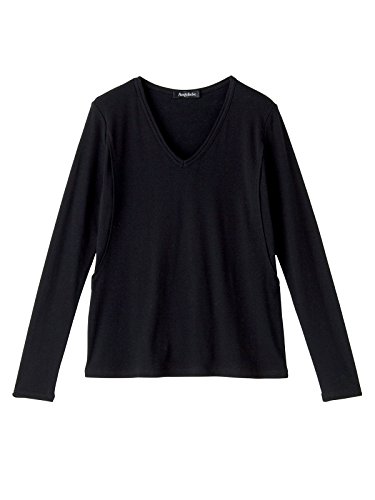 Angeliebe エンジェリーベ 産後用 授乳服 やわらか フライス Vネック Tシャツ ママ 長袖 フリー ブラック