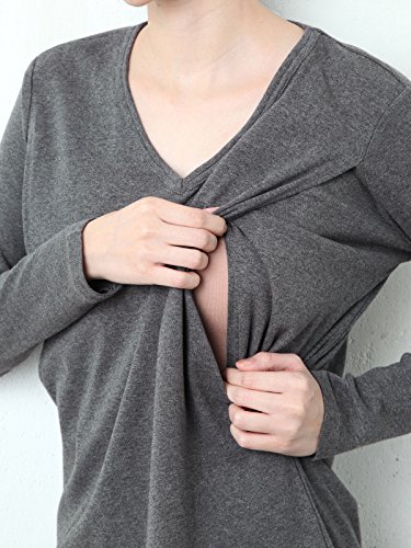 Angeliebe エンジェリーベ 産後用 授乳服 やわらか フライス Vネック Tシャツ ママ 長袖 フリー ネイビー 30057 30057300