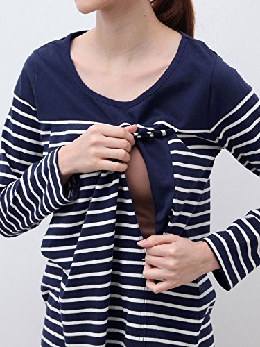 Angeliebe エンジェリーベ マタニティ 授乳口付き やわらか フライス クルー ネック Tシャツ 妊婦服 長袖 産前 産後 M ~ L ネイビー 20934 20934302