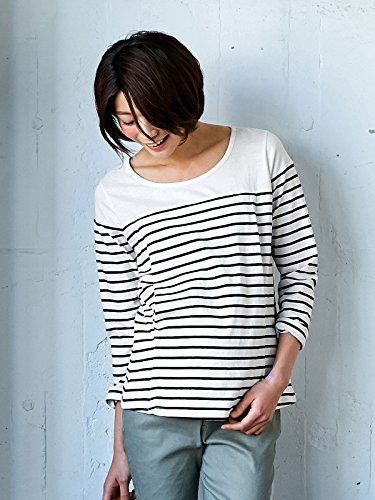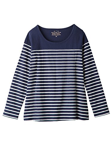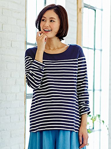 Angeliebe エンジェリーベ 授乳 口 付 コットン パネル ボーダー トップス M ネイビー