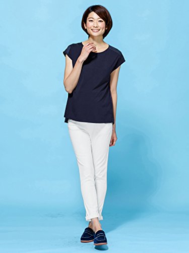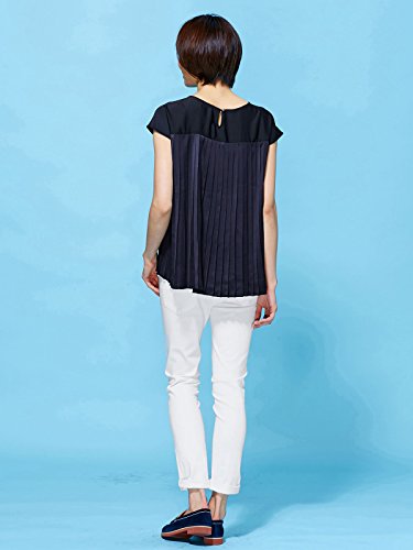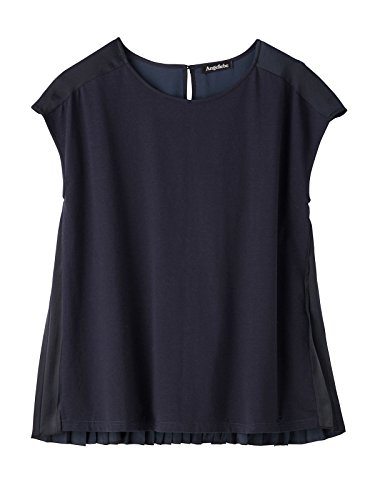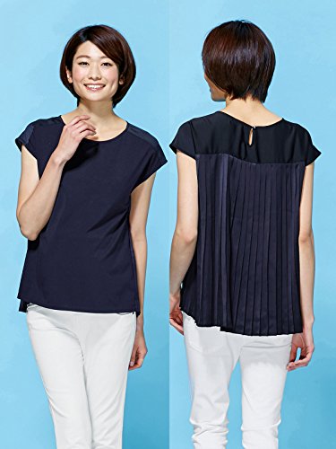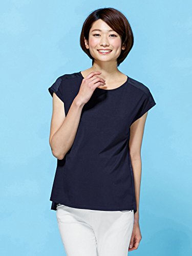 Angeliebe エンジェリーベ マタニティ トップス 授乳 しやすい バック ソフト サテン プリーツ プル オーバー 産前 産後 妊婦服 半袖 フリー ネイビー