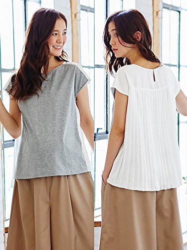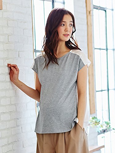 Angeliebe エンジェリーベ マタニティ トップス 授乳しやすい バック ソフト サテン プリーツ プル オーバー 産前 産後 妊婦服 半袖 フリー 杢 グレー 21318 21318300