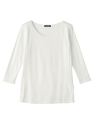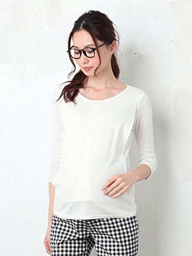 Angeliebe エンジェリーベ マタニティ トップス 授乳口付き 綿混 やわらか フライス ラウンド ネック 七分袖 Tシャツ 産前 産後 妊婦服 S ~ M オフ ホワイト 21329 21329101