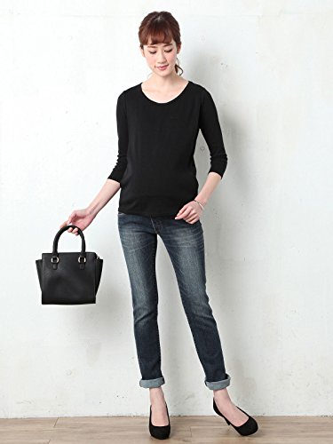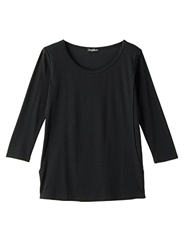 Angeliebe エンジェリーベ マタニティ トップス 授乳口付き 綿混 やわらか フライス ラウンド ネック 七分袖 Tシャツ 産前 産後 妊婦服 M ~ L ブラック 21329 21329202