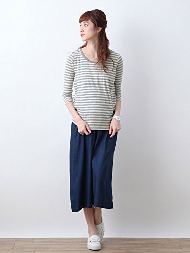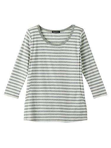 Angeliebe エンジェリーベ マタニティ トップス 授乳口付き 綿混 やわらか フライス ラウンド ネック 七分袖 Tシャツ 産前 産後 妊婦服 S ~ M グレー × オフ ボーダー 21329 21329601