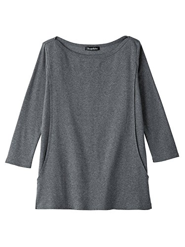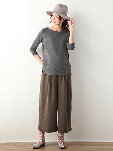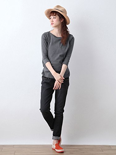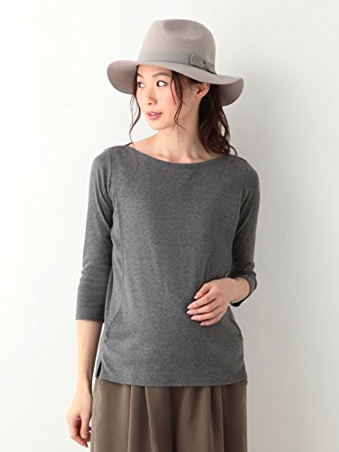 Angeliebe エンジェリーベ マタニティ Tシャツ 授乳口付き 綿混 やわらか フライス ボート ネック 七分袖 産前 産後 妊婦服 S ~ M 杢 チャコール 21332 21332401