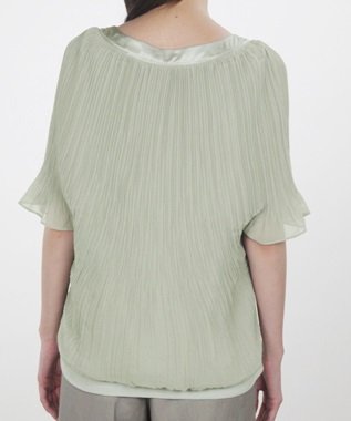 肌触りのよいカットソーに、細やかなプリーツを施したシフォンをふわりと重ねた洗練デザイン。