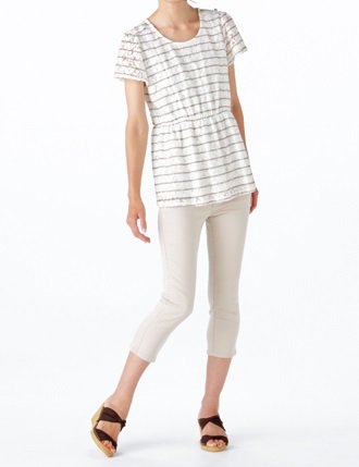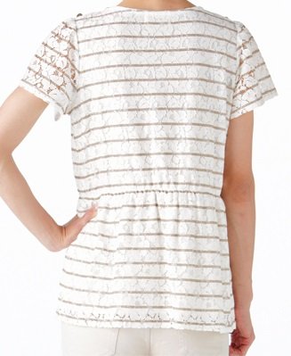 【 アウトレット 】 Angeliebe エンジェリーベ ボーダー プリント ペプラム 授乳 兼用 トップス L ベージュ