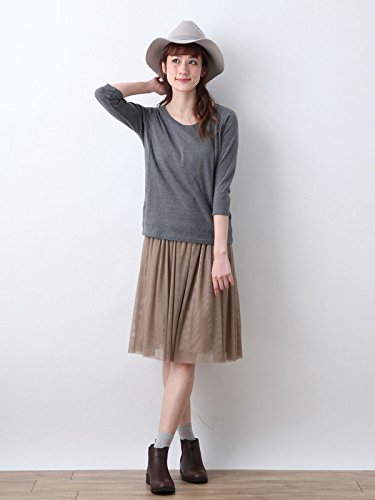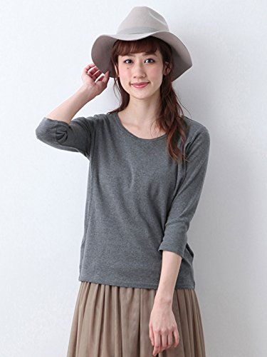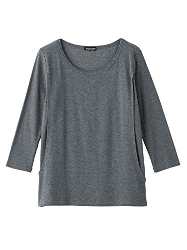 Angeliebe エンジェリーベ 産後用 授乳服 綿混 やわらか フライス ラウンド ネック 七分袖 Tシャツ ママ 半袖 S ~ M 杢 チャコール 30066 30066401