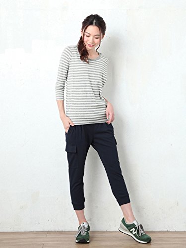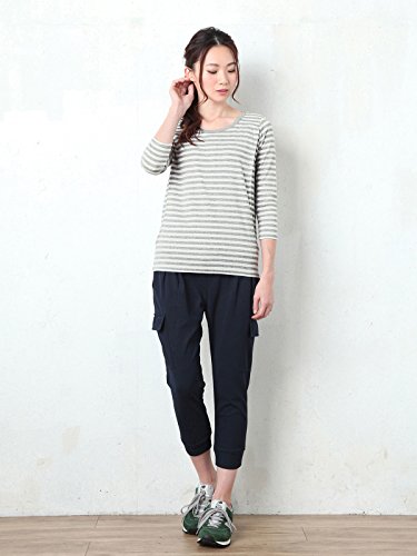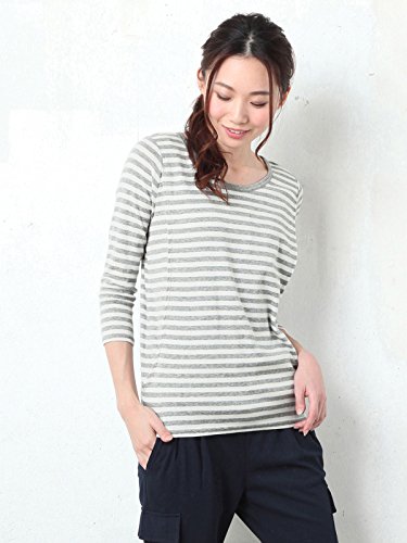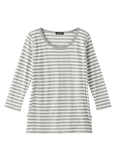 Angeliebe エンジェリーベ 産後用 授乳服 綿混 やわらか フライス ラウンド ネック 七分袖 Tシャツ ママ 半袖 S ~ M グレー × オフ ボーダー 30066 30066601