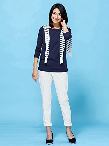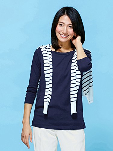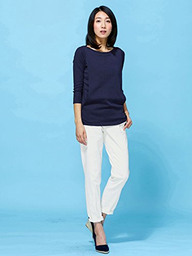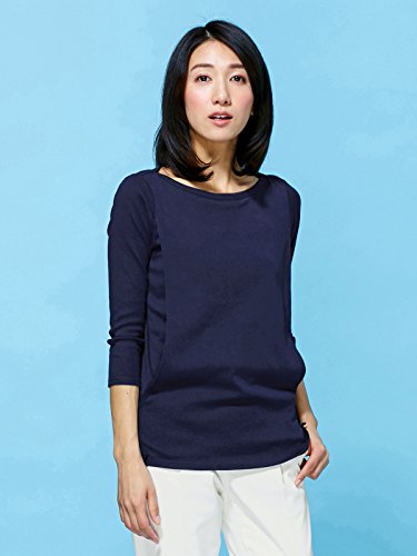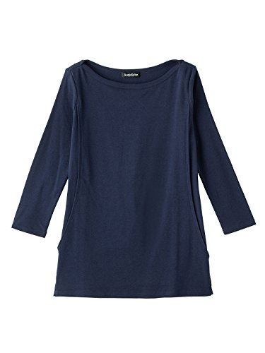 Angeliebe エンジェリーベ 産後用 Tシャツ 授乳服 綿 混 やわらか フライス ボート ネック 七分 袖 スリム カットソー 産後用用 ママ M ~ L ネイビー 30067 30067102
