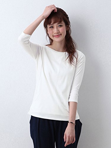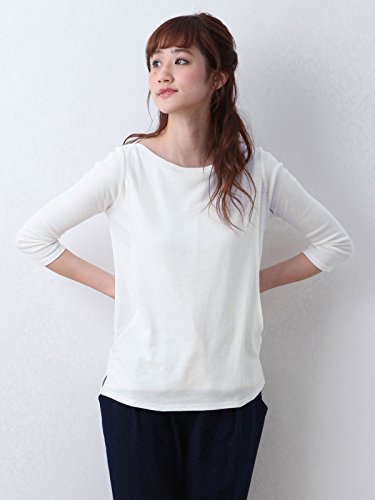 Angeliebe エンジェリーベ 産後用 Tシャツ 授乳服 綿 混 やわらか フライス ボート ネック 七分 袖 スリム カットソー 産後用用 ママ S ~ M オフ ホワイト 30067 30067201