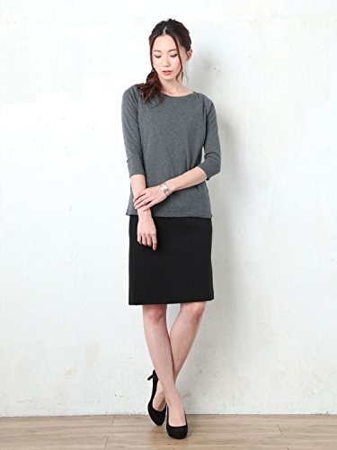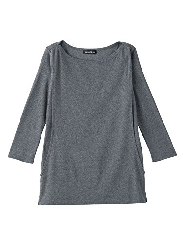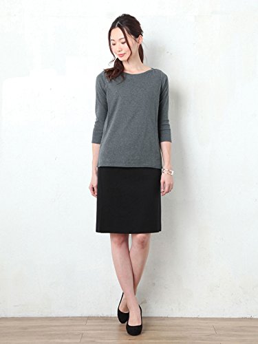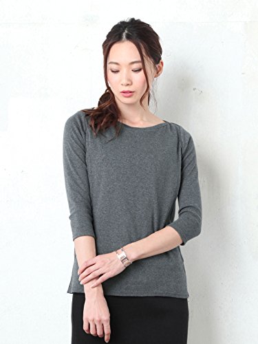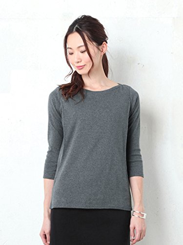 Angeliebe エンジェリーベ 産後用 Tシャツ 授乳服 綿 混 やわらか フライス ボート ネック 七分 袖 スリム カットソー 産後用用 ママ S ~ M 杢 チャコール 30067 30067401