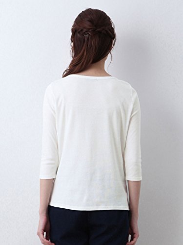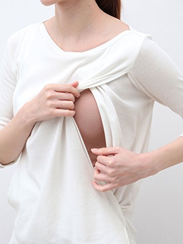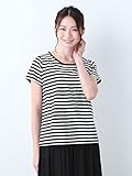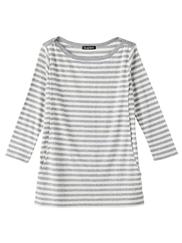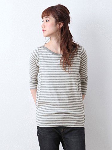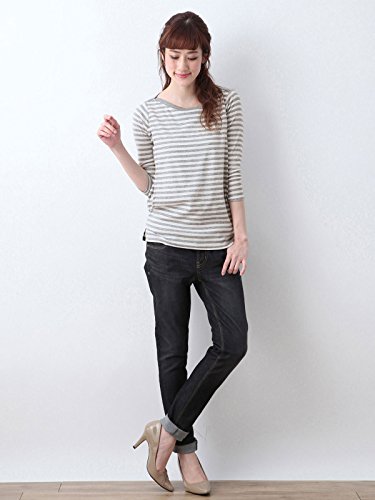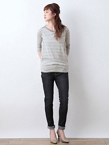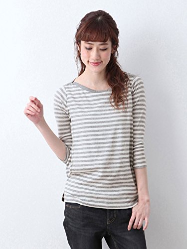 Angeliebe エンジェリーベ 産後用 Tシャツ 授乳服 綿 混 やわらか フライス ボート ネック 七分 袖 スリム カットソー 産後用用 ママ S ~ M グレー × オフ ボーダー 30067 30067601