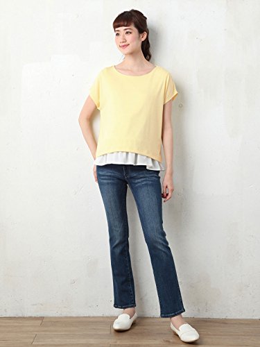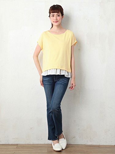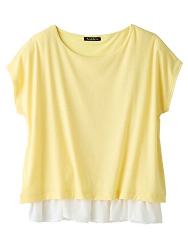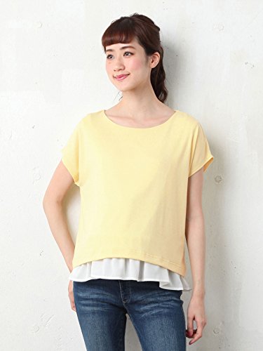 Angeliebe エンジェリーベ マタニティ 授乳口 付 カットソー × シフォン レイヤード トップス 産前 産後 妊婦服 半袖 フリー イエロー × オフ