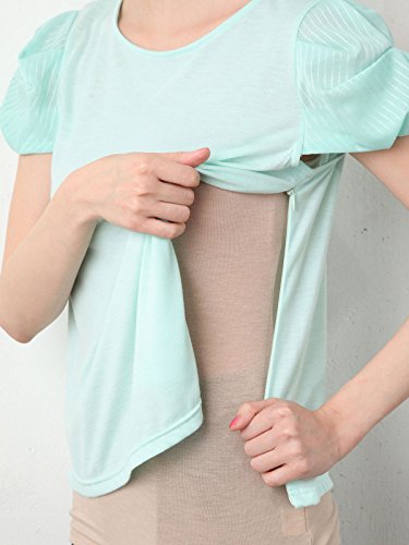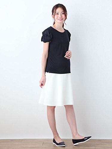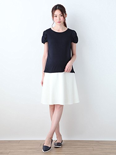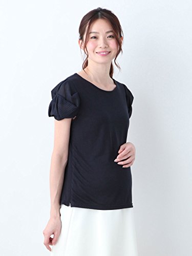 Angeliebe エンジェリーベ 授乳 口 付 シアー ストライプ タック スリーブ カットソー フリー ネイビー