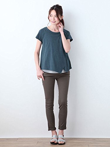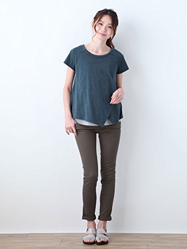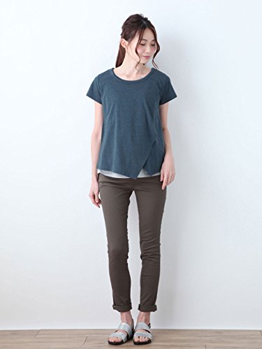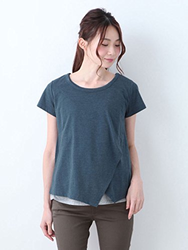 Angeliebe エンジェリーベ マタニティ かんたん 授乳 裾 アシメ トップス 産前 産後 妊婦服 半袖 S ~ M 杢 ブルー 21330 21330201