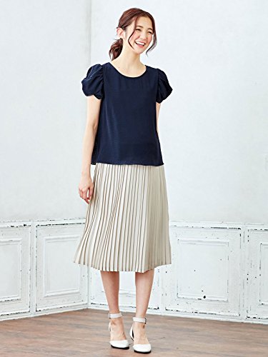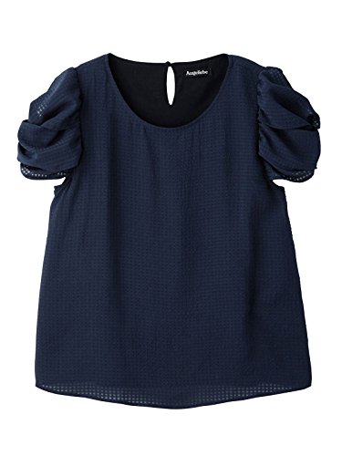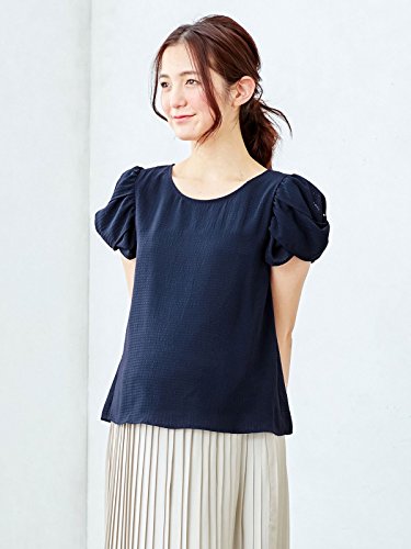 Angeliebe エンジェリーベ マタニティ 授乳口付き シアー ギンガム ねじり袖 トップス 妊婦服 産前 産後 フリー ネイビー × ネイビー 21449 21449200