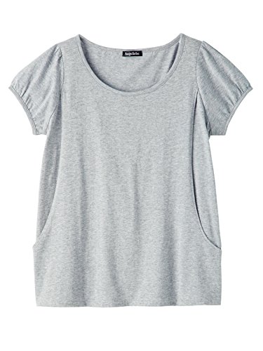 Angeliebe エンジェリーベ マタニティ 授乳口 付 パフスリーブ Tシャツ 産前 産後 妊婦服 授乳服 S ~ M 杢 グレー
