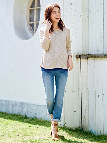 Angeliebe エンジェリーベ マタニティ 授乳口付き サイド ファスナー 杢 裏毛 トップス 妊婦服 産前 産後 長袖 S ~ M ベージュ 21402 21402101