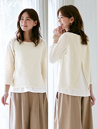 Angeliebe エンジェリーベ マタニティ 授乳口 付 レイヤード ツイード 調 バック シャン トップス 妊婦服 産前 産後 長袖 M ~ L ベージュ