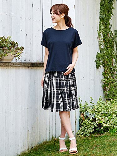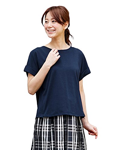 Angeliebe エンジェリーベ マタニティ 授乳口 付 コクーン シルエット トップス 妊婦服 産前 産後 半袖 M ~ L ネイビー