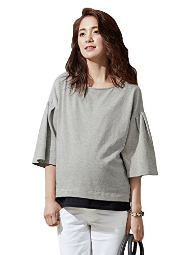 Angeliebe エンジェリーベ マタニティ 授乳口付き フレア スリーブ トップス 妊婦服 産前 産後 フリー 杢 グレー 21539 21539500