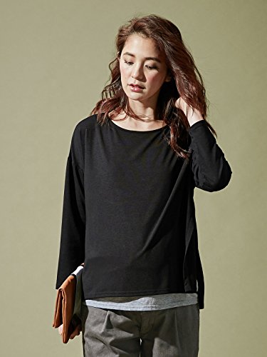 Angeliebe エンジェリーベ マタニティ トップス 簡単 授乳 天竺 サイドスリット ボートネック カットソー 妊婦服 産前 産後 フリー ブラック 21655 21649500