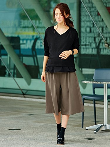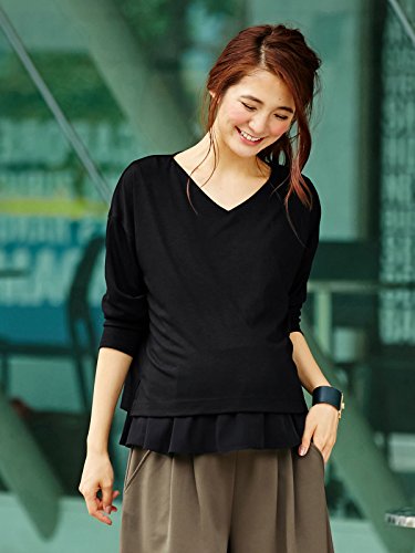 Angeliebe エンジェリーベ 授乳 口 付 V ネック レイヤード トップス フリー ブラック