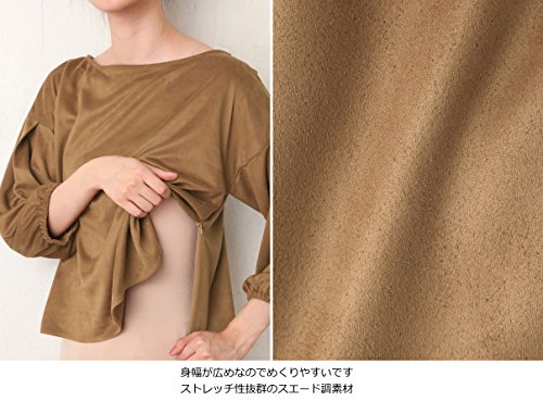 Angeliebe エンジェリーベ 授乳口 付 ストレッチ スウェード ワイド スリーブ プル オーバー マタニティ 妊婦服 授乳服 産前 産後 フリー ネイビー