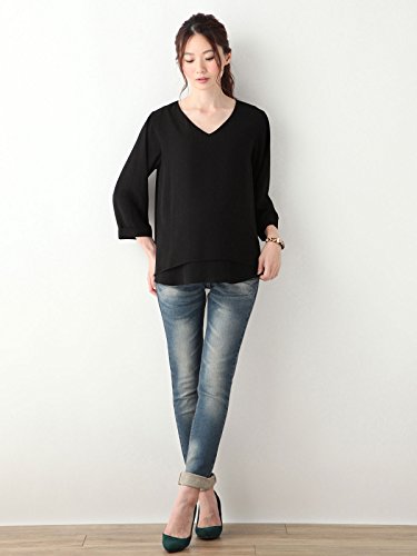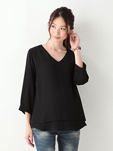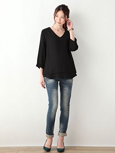 Angeliebe エンジェリーベ マタニティ 授乳口付き レイヤード V ネック トップス 妊婦服 重ね着風 産前 産後 M ~ L ブラック 21661 21661302