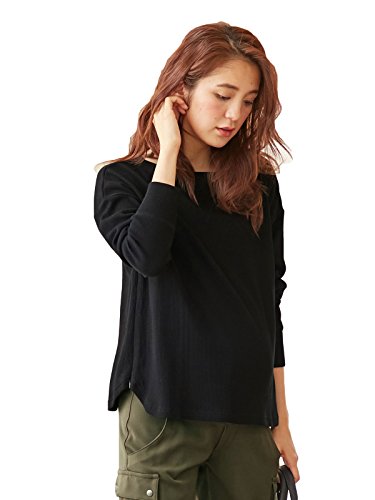 Angeliebe エンジェリーベ マタニティ 授乳口付き サーマル オフショルダー トップス 妊婦服 産前 産後 M ~ L ブラック 21676 21676502