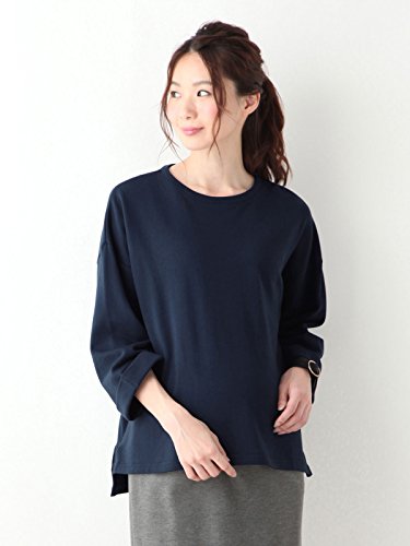 Angeliebe エンジェリーベ マタニティ トップス 授乳口付き ミニ 裏毛 八分袖 プルオーバー 妊婦服 授乳服 産前 産後 M 〜 L ネイビー 21515 21515302