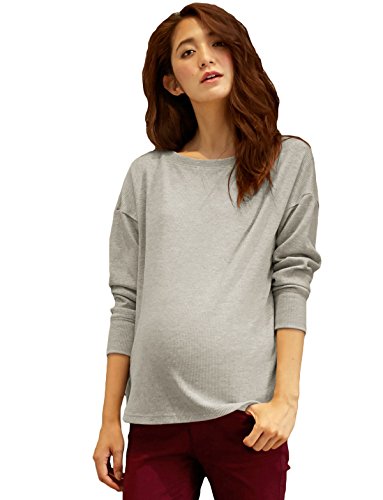 Angeliebe エンジェリーベ マタニティ 授乳口 付 サーマル オフショルダー トップス 授乳服 妊婦服 産前 産後 S ~ M 杢 グレー