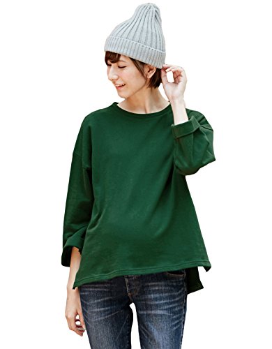 Angeliebe エンジェリーベ マタニティ トップス 授乳口付き ミニ 裏毛 八分袖 プルオーバー 妊婦服 授乳服 産前 産後 S 〜 M フォレスト グリーン 21515 21515101