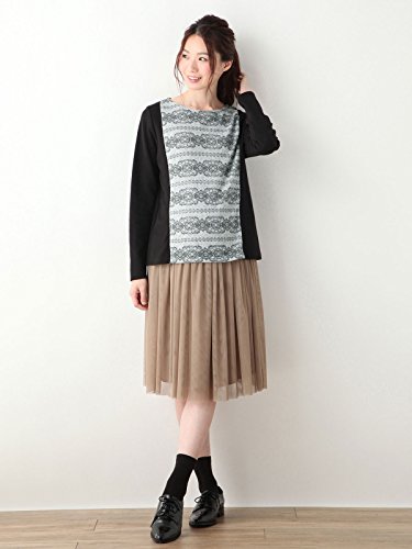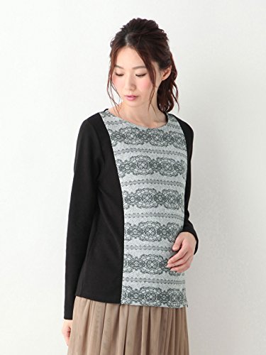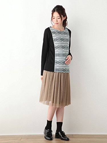 Angeliebe エンジェリーベ マタニティ 授乳口付き レース プリント トップス 妊婦服 授乳服 産前 産後 長袖 M ~ L ブラック 21511 21511202
