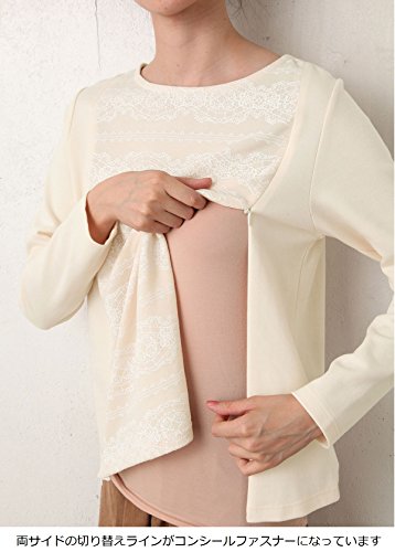 Angeliebe エンジェリーベ マタニティ Tシャツ 授乳口付き 綿混 やわらか フライス ボート ネック 七分袖 産前 産後 妊婦服 M ~ L オフ ホワイト 21332 21332302