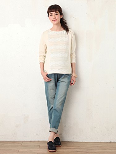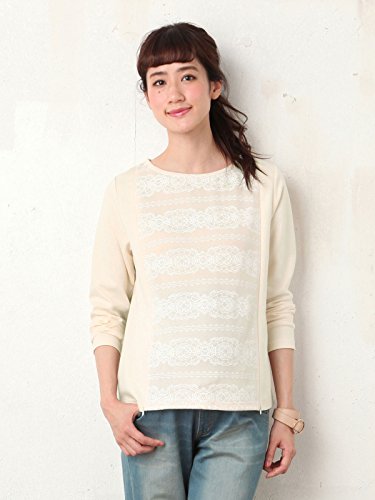 Angeliebe エンジェリーベ 授乳口 付 レース プリント トップス マタニティー 妊婦服 授乳服 産前 産後 長袖 S ~ M オフ ホワイト