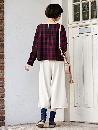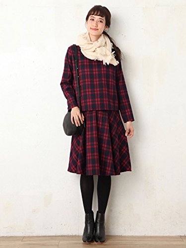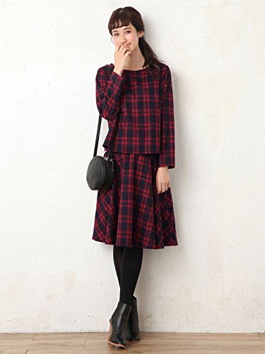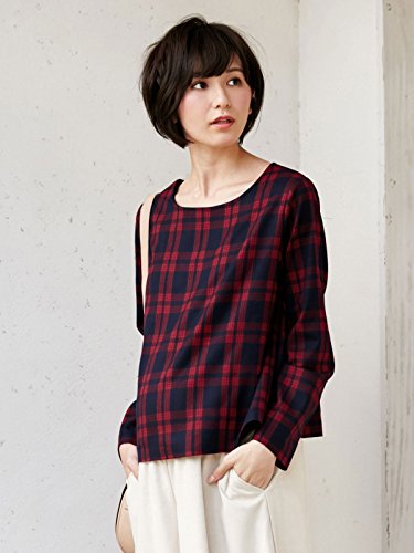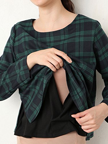 Angeliebe エンジェリーベ マタニティ 授乳口付き ツイル チェック トップス 産前 産後 妊婦服 長袖 S ~ M レッド 系 21640 21640201