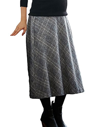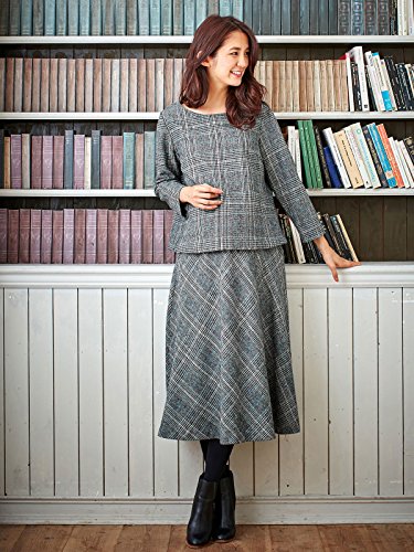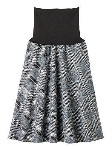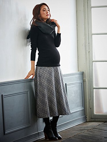 Angeliebe エンジェリーベ 産前 産後 対応 フィット グレン チェック ツイード フレア スカート マタニティ 妊婦服 ミモレ丈 M ~ L ブラック 系