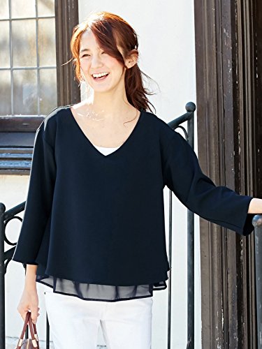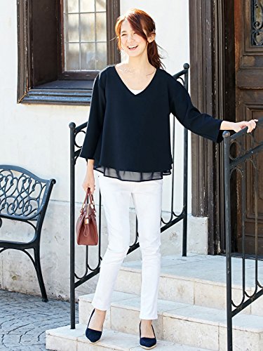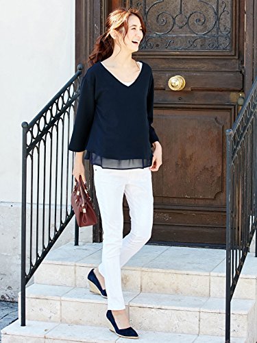 Angeliebe エンジェリーベ マタニティ 授乳口 付 ストレッチ ジョーゼット Vネック レイヤード トップス 妊婦服 産前 産後 重ね着風 通勤 S ~ M ネイビー 21786 21786101