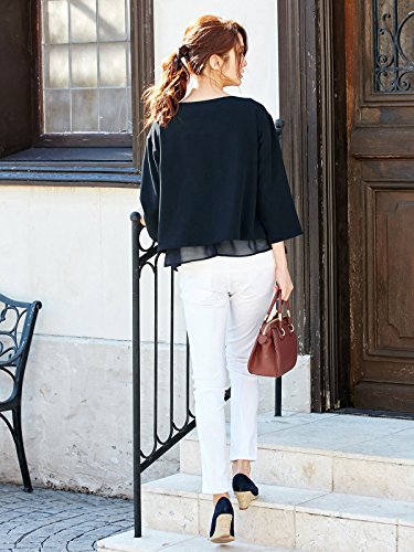 - ●【ジョーゼット×シフォンのキレイめアイテム】程よいハリと落ち感のあるキレイめストレッチジョーゼットとふんわりシフォンの組み合わせ。マタニティボトムのウエスト部分をシフォンが程よく目隠ししてくれる長さ。同素材のP・パンツを合わせればトレンドのセットアップスタイルが楽しめます。