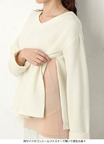 Angeliebe エンジェリーベ マタニティ 授乳口付き Vネック 裏起毛 フレアー トップス 産前 産後用 授乳服 授乳口付き服 妊婦服 フリー 杢 チャコール 21720 21720100