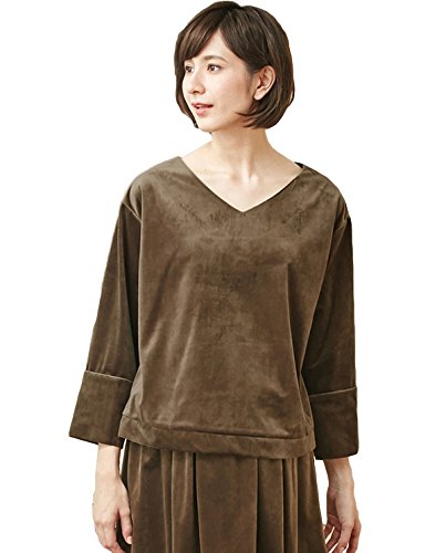 - ●【光沢感が美しい人気のベロア素材。異素材コンビのきれいめトップス】あたたかみのある起毛感と美しい光沢で人気のベロア素材を使用。浅めのVネックや太めのスリーブ、ボトムを選ばないボックスシルエットなど、シンプルな分細部のディテールにこだわりました。