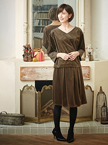 Angeliebe エンジェリーベ マタニティ 授乳口 付 ベロア Vネック プルオーバー 妊婦服 産前 産後 お呼ばれ 授乳服 フリー キャメル