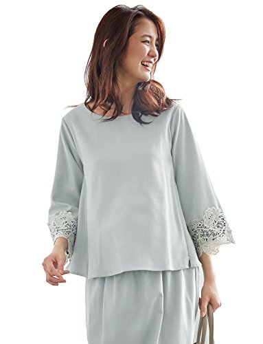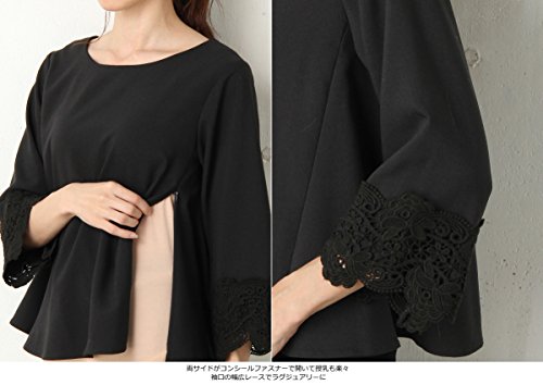 Angeliebe エンジェリーベ マタニティ 授乳口 付 ツイル 袖レース プルオーバー 産前 産後 通勤 オフィス 卒入園式 お宮参り 授乳服 フリー グレー