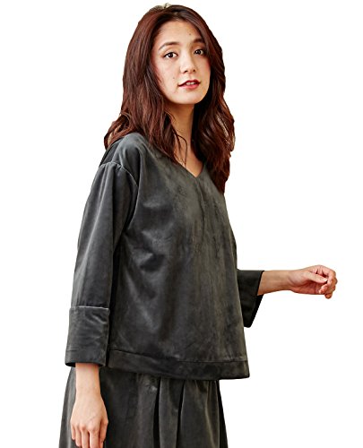 - ●【光沢感が美しい人気のベロア素材。異素材コンビのきれいめトップス】あたたかみのある起毛感と美しい光沢で人気のベロア素材を使用。浅めのVネックや太めのスリーブ、ボトムを選ばないボックスシルエットなど、シンプルな分細部のディテールにこだわりました。