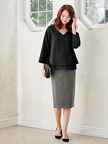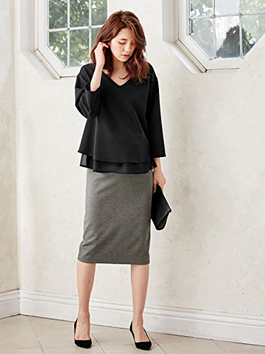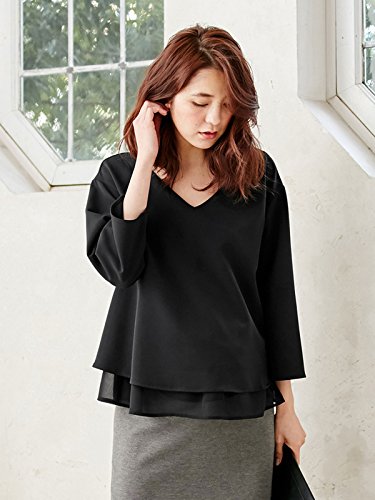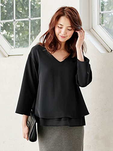 Angeliebe エンジェリーベ マタニティ 授乳口付き ストレッチ ジョーゼット Vネック レイヤード トップス 妊婦服 産前 産後 重ね着風 通勤 M ~ L ブラック 21786 21786202